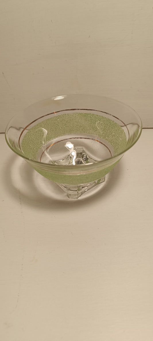 Coupes en verre transparent et granité vert cerclage dorées années 50.