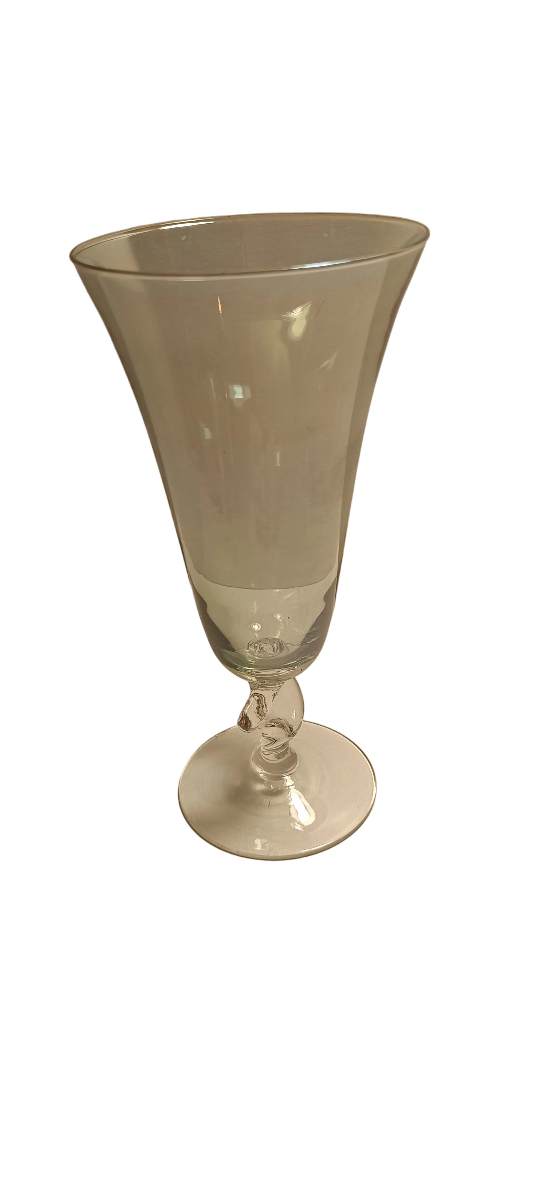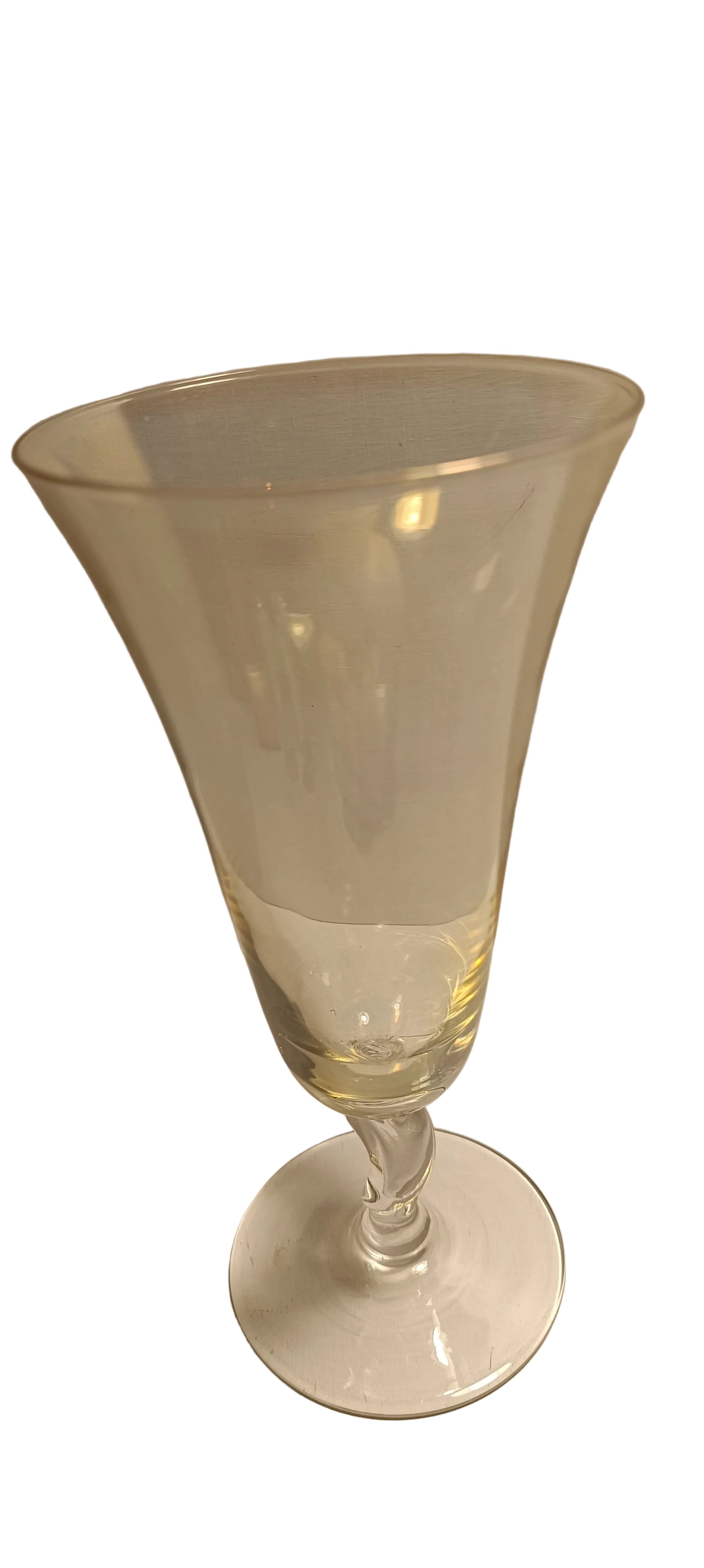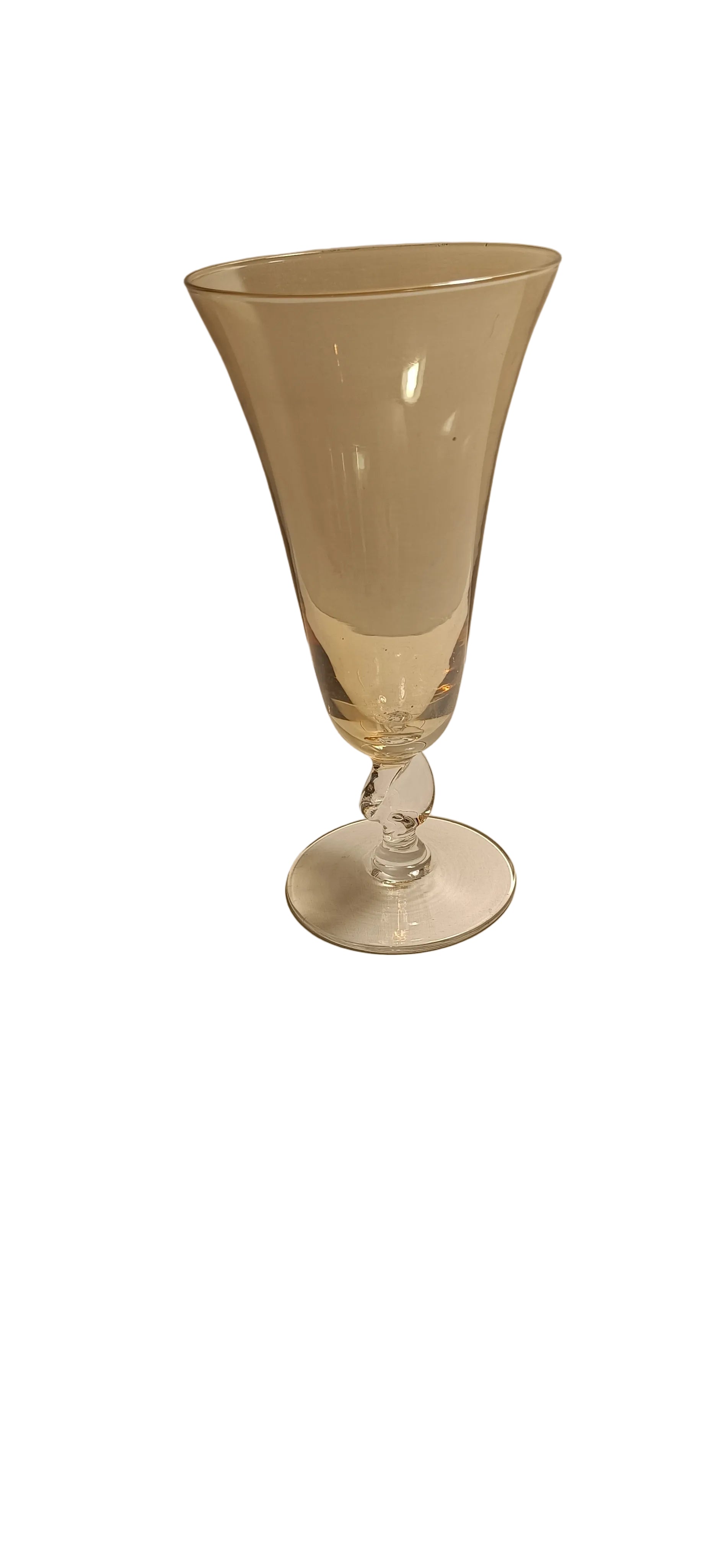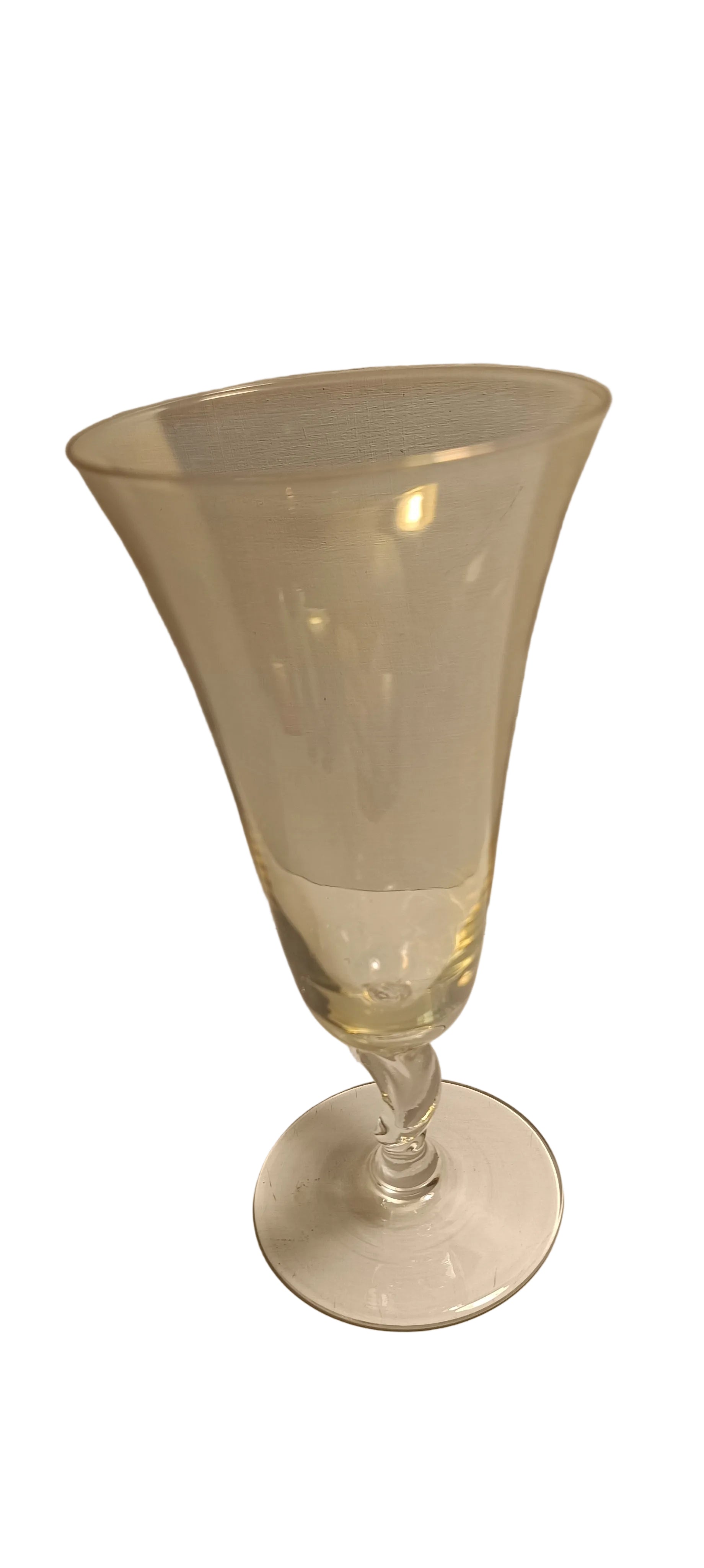 Lot de quatre coupes anciennes de différentes couleurs avec le pied torsadé.