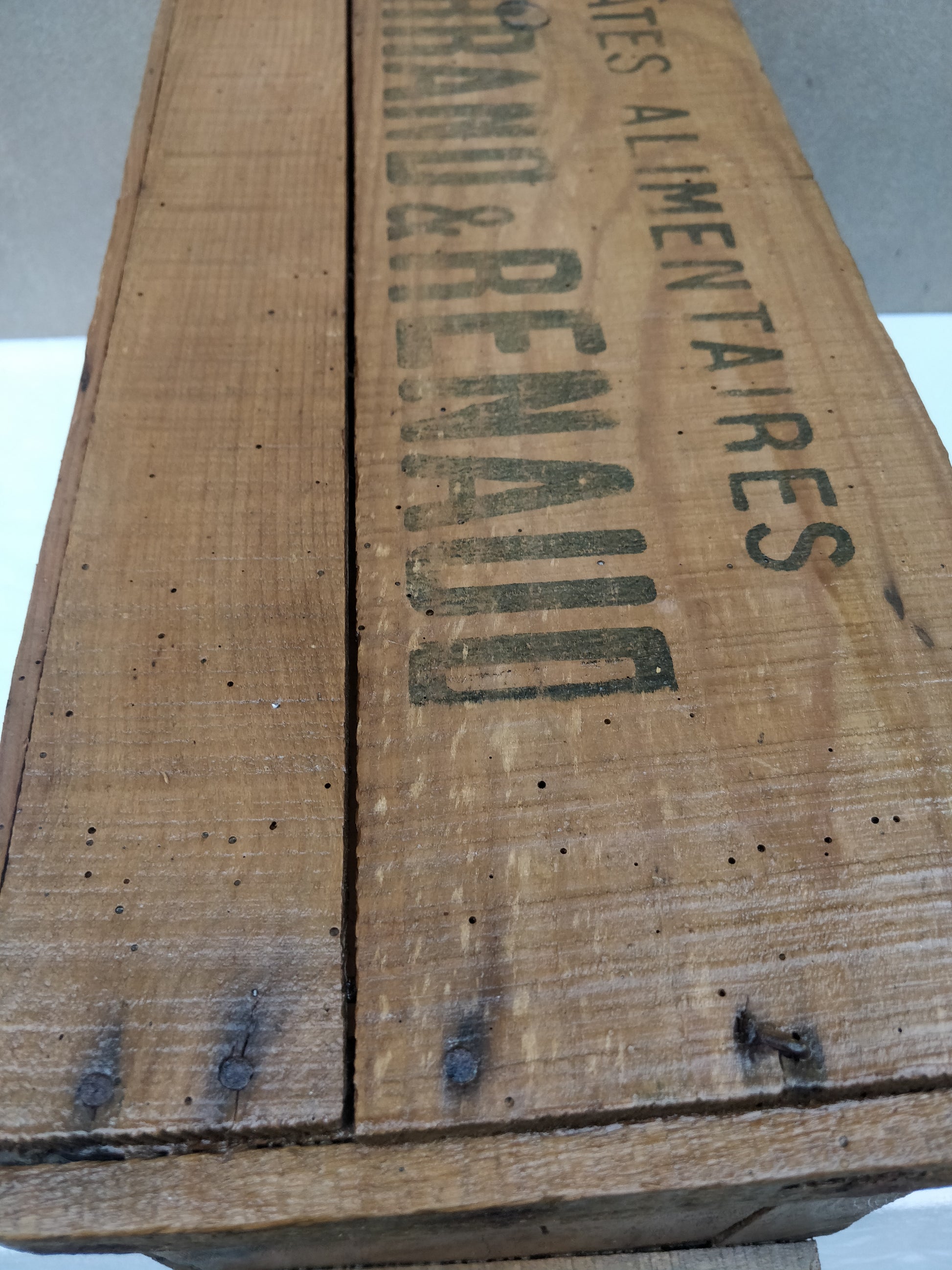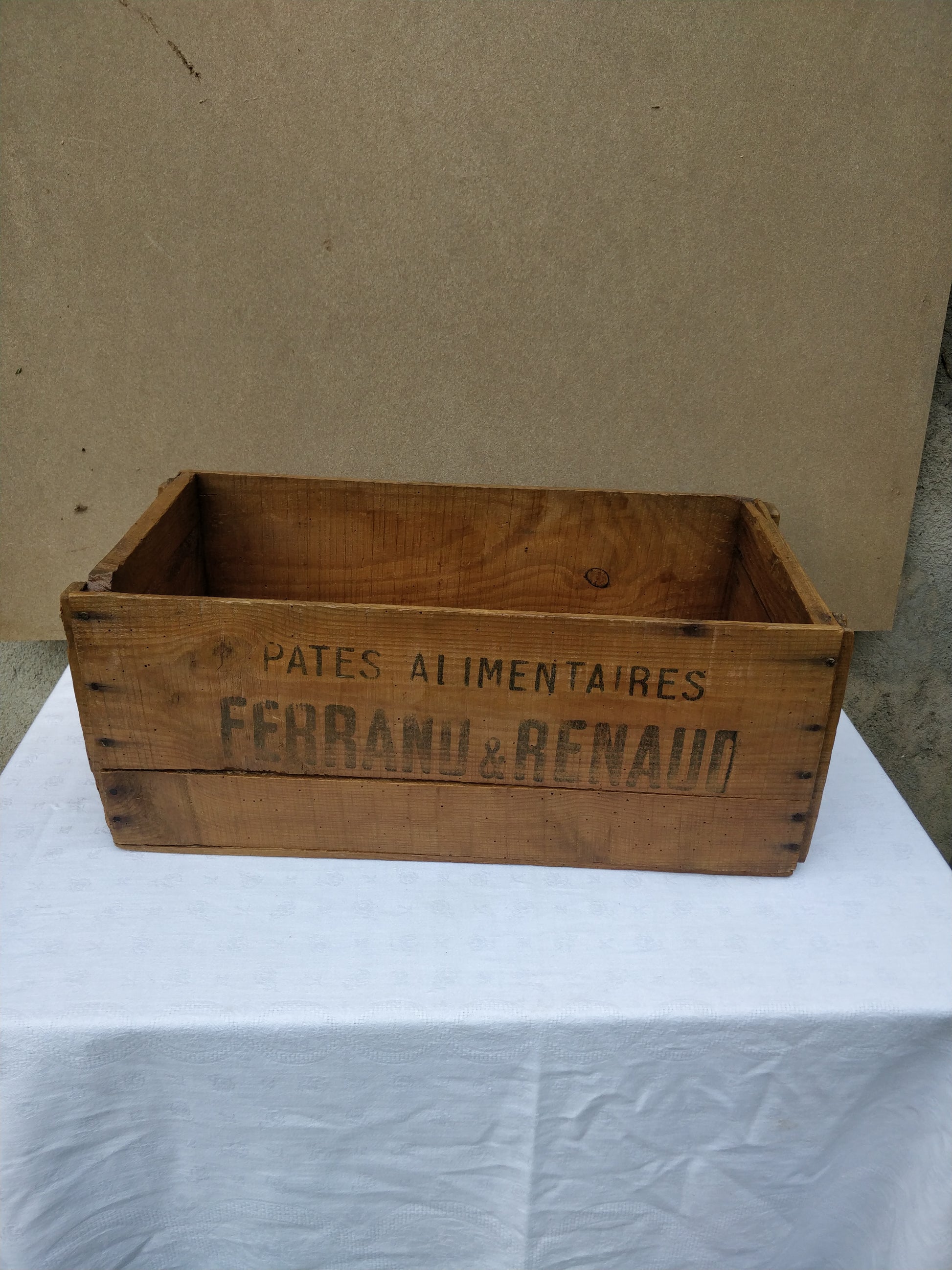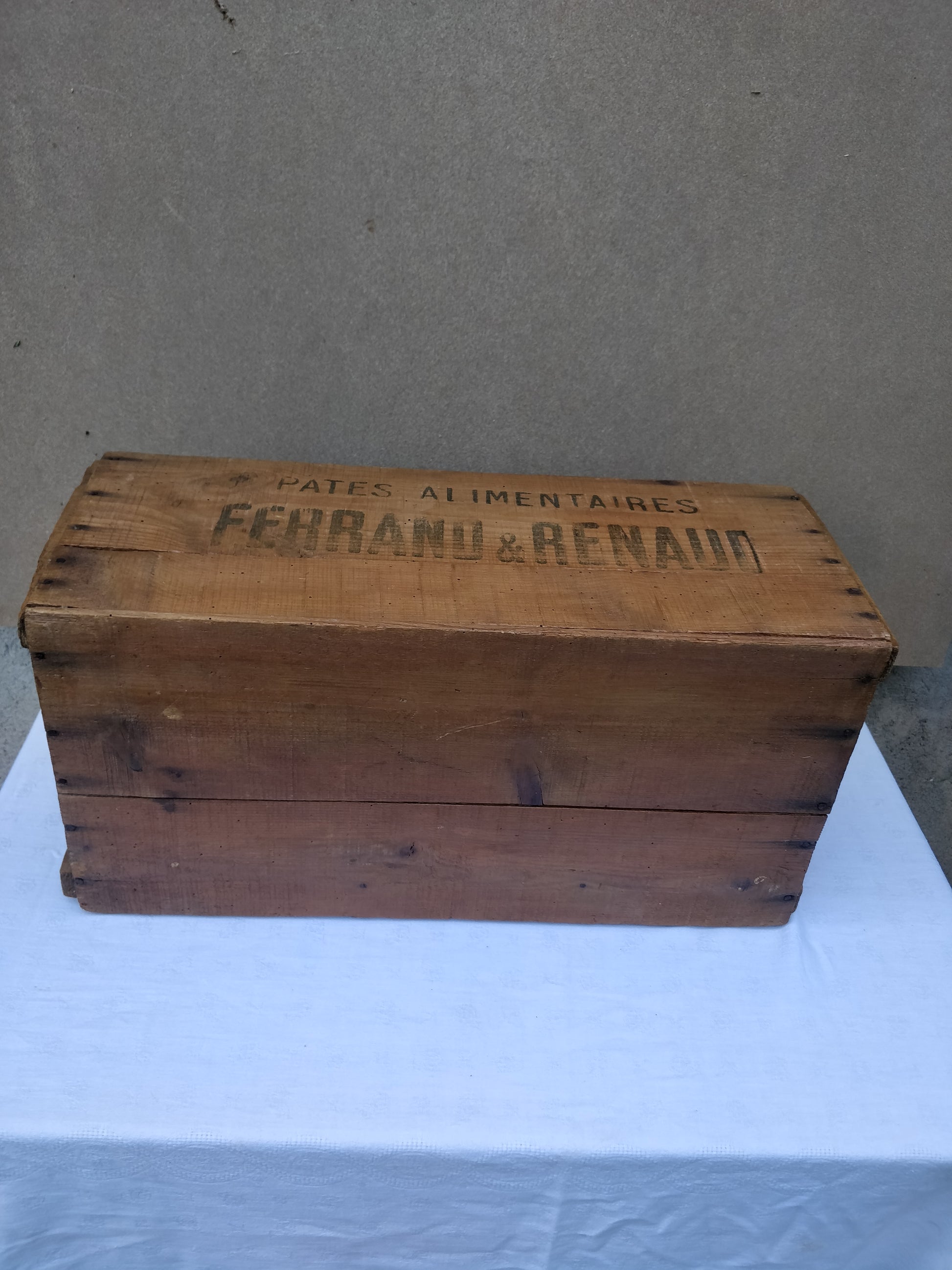 Caisse en bois gravée ( Pâtes alimentaires, FERRAND & RENAUD ).