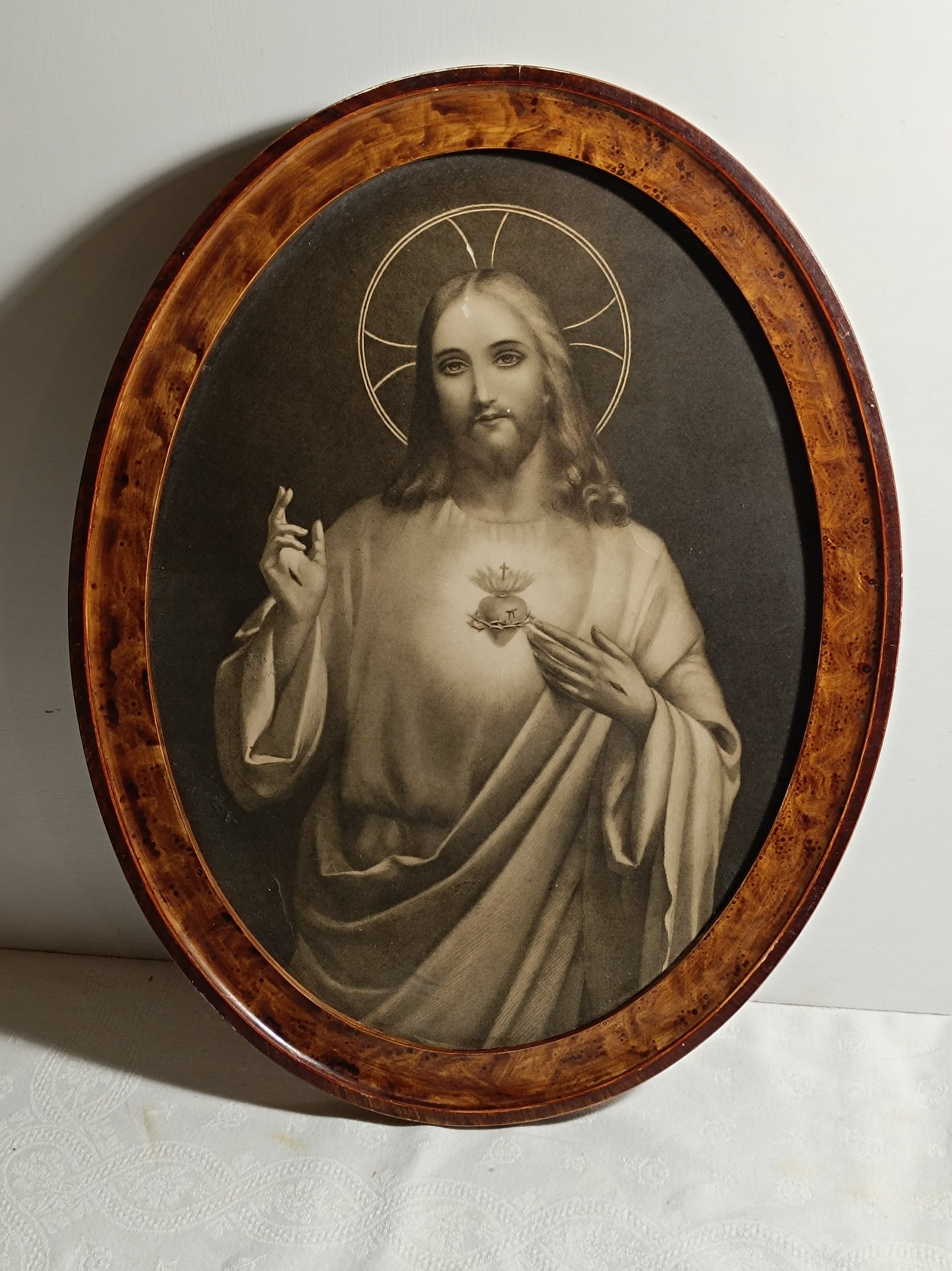 Joli cadre ancien, bois et plâtre, en très bel état, à l'intérieur se trouve une photo ancienne de Jésus le Coeur-.Sacré.