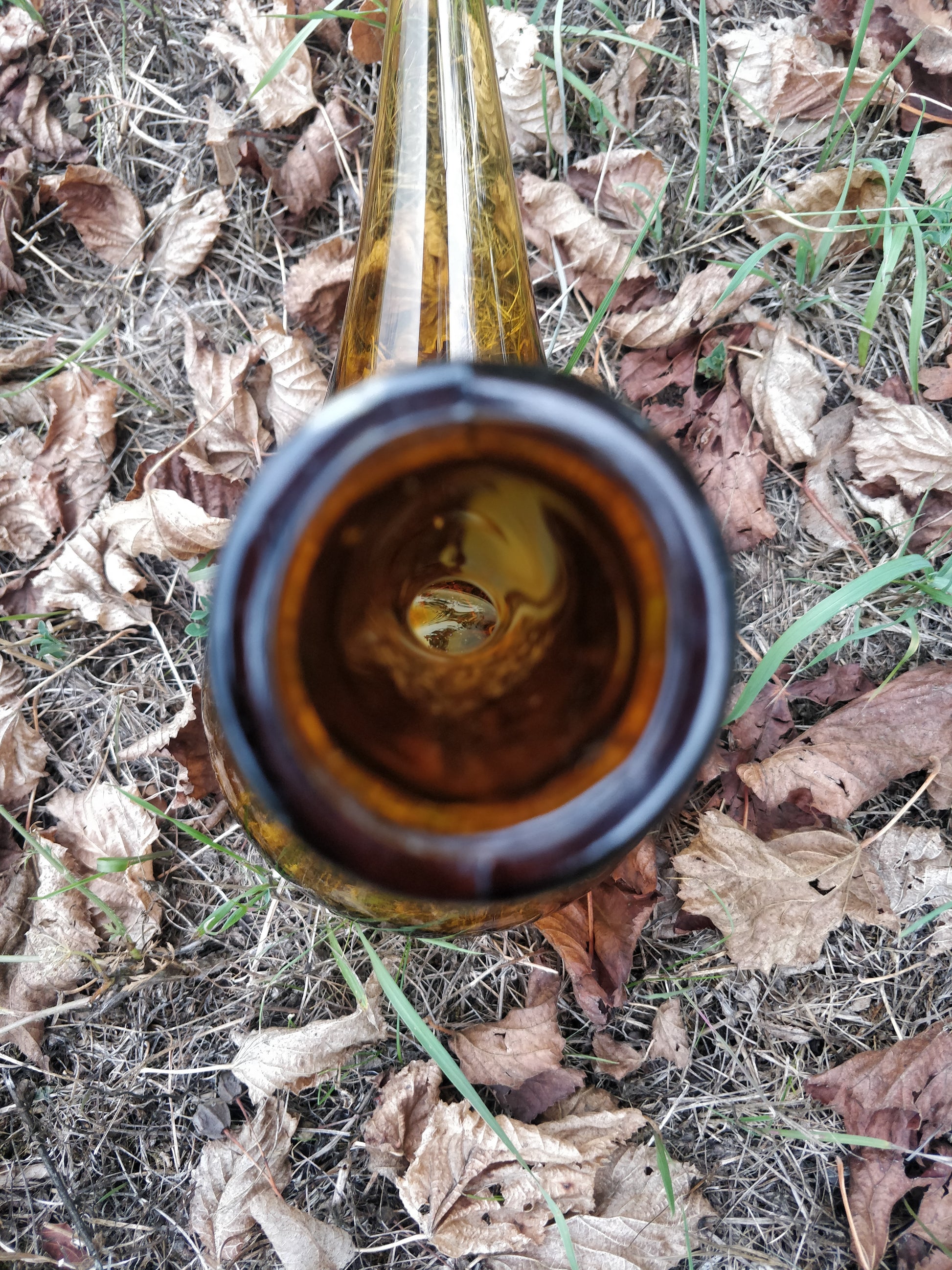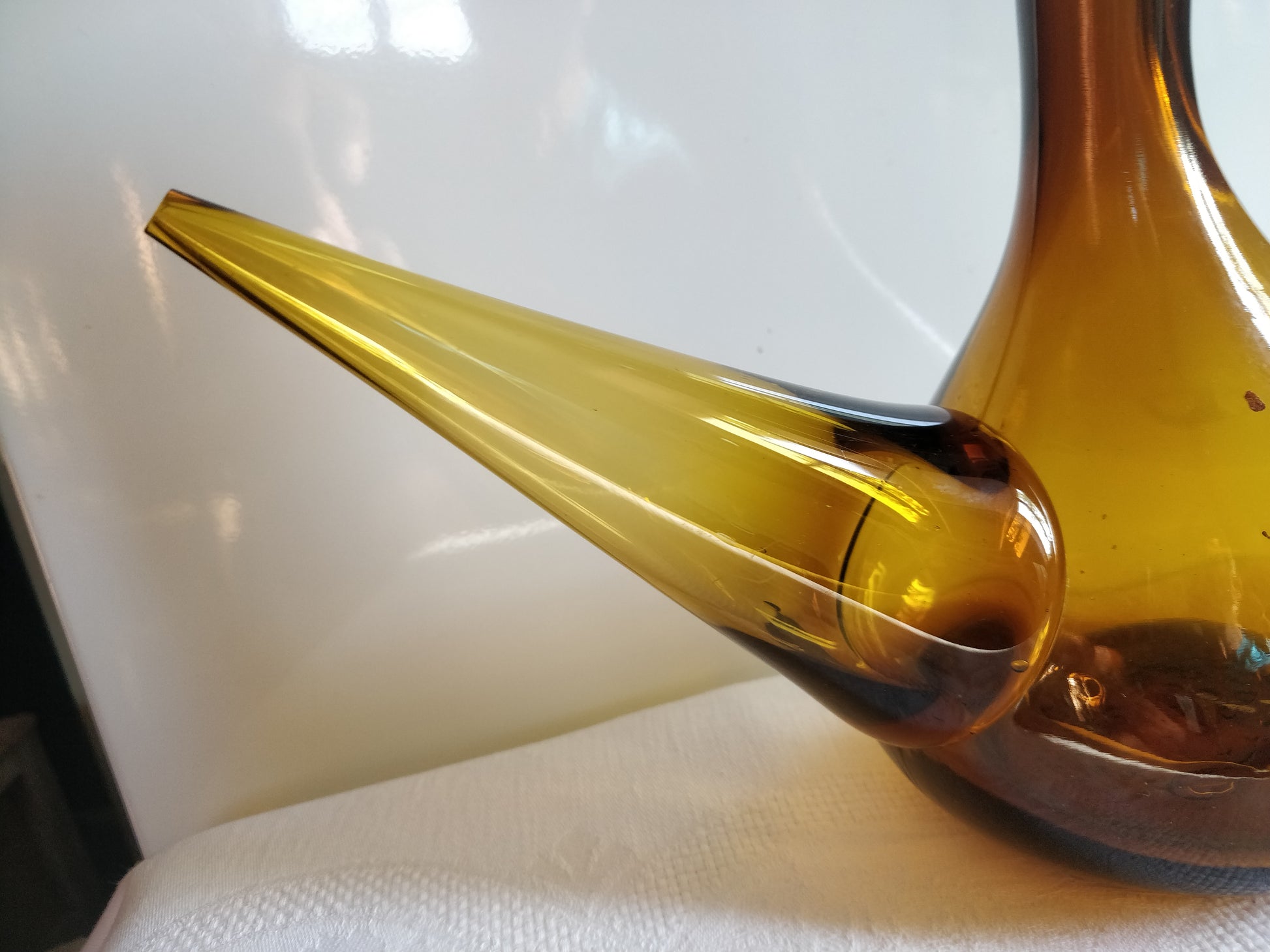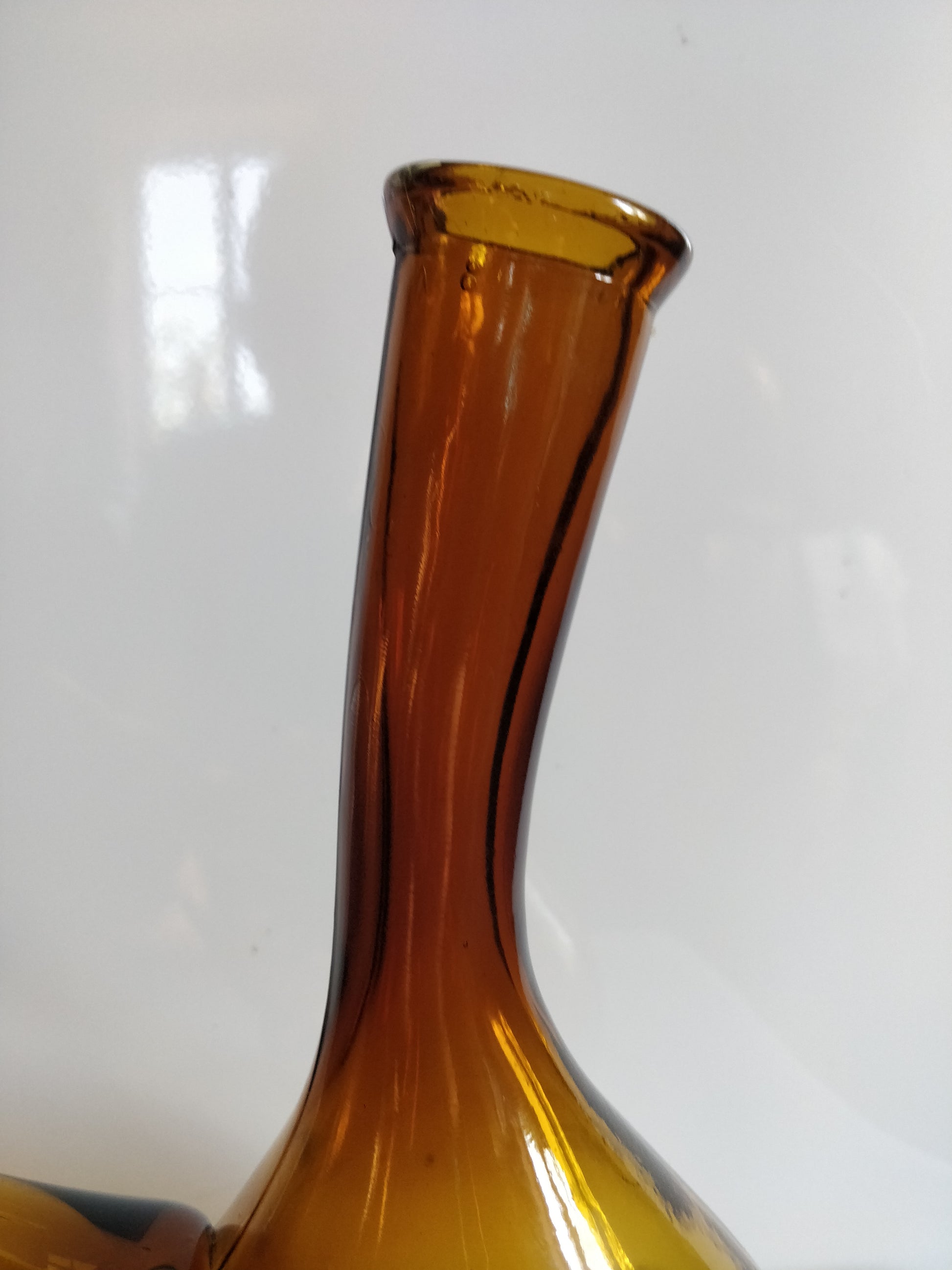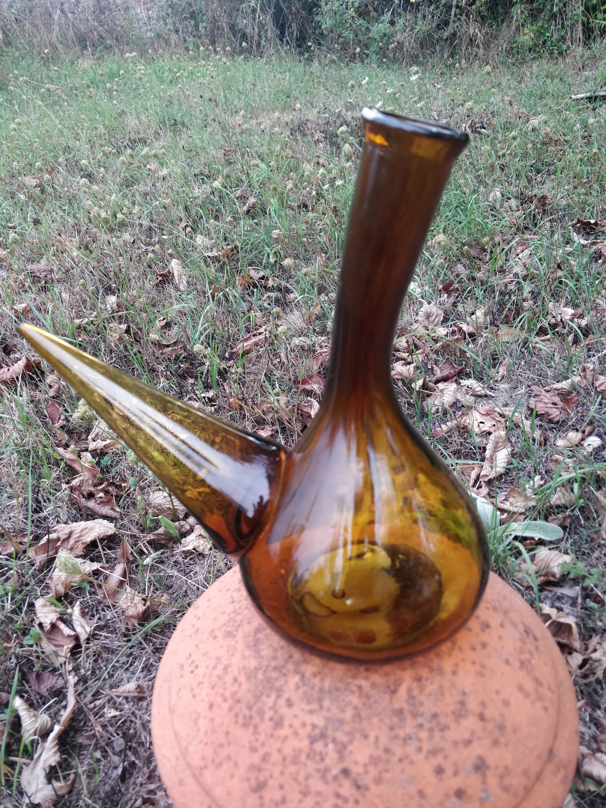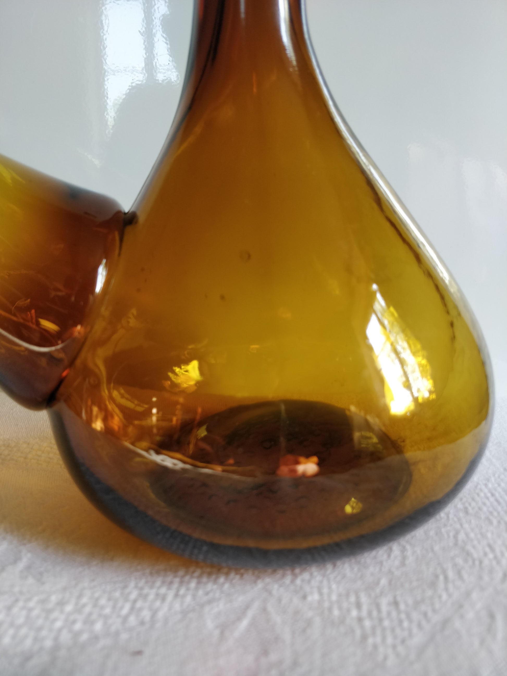 Magnifique carafe burette en verre soufflée, jolie couleur chaude.