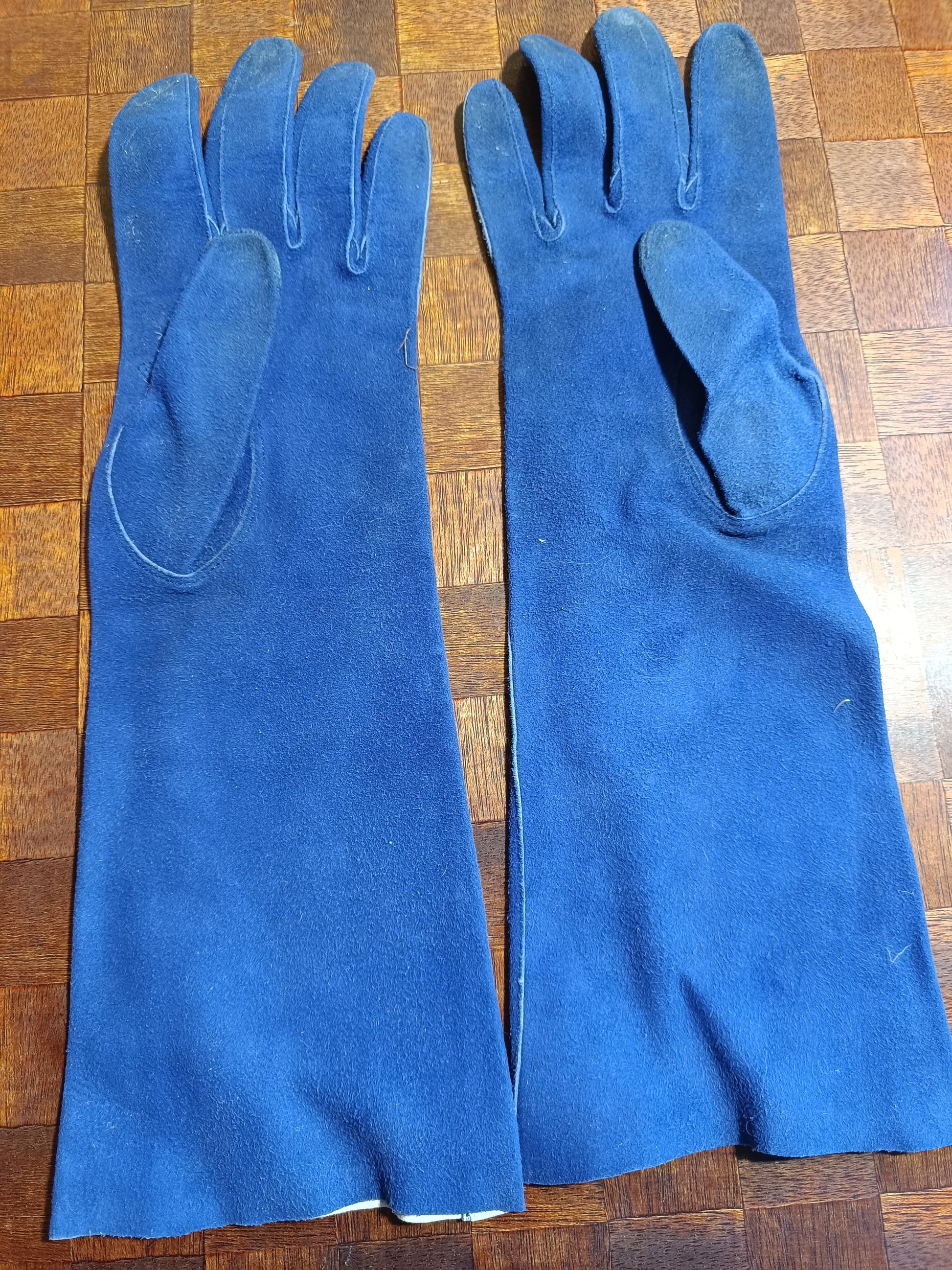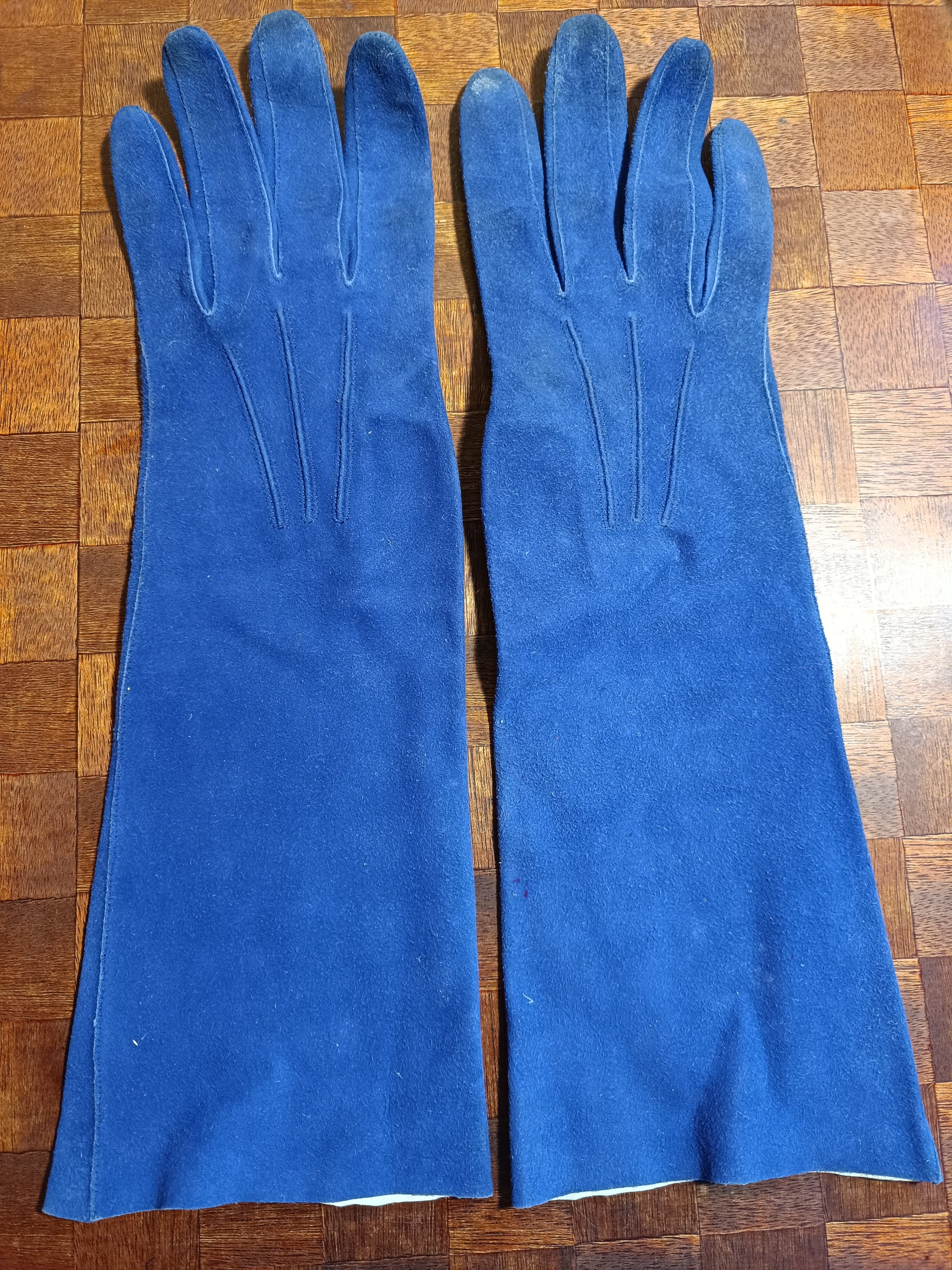 Ces gants sont d'occasion et en bon état, quelques traces d'âge et d'usure sont visibles, aucun accroc à signaler. Voir les photos.