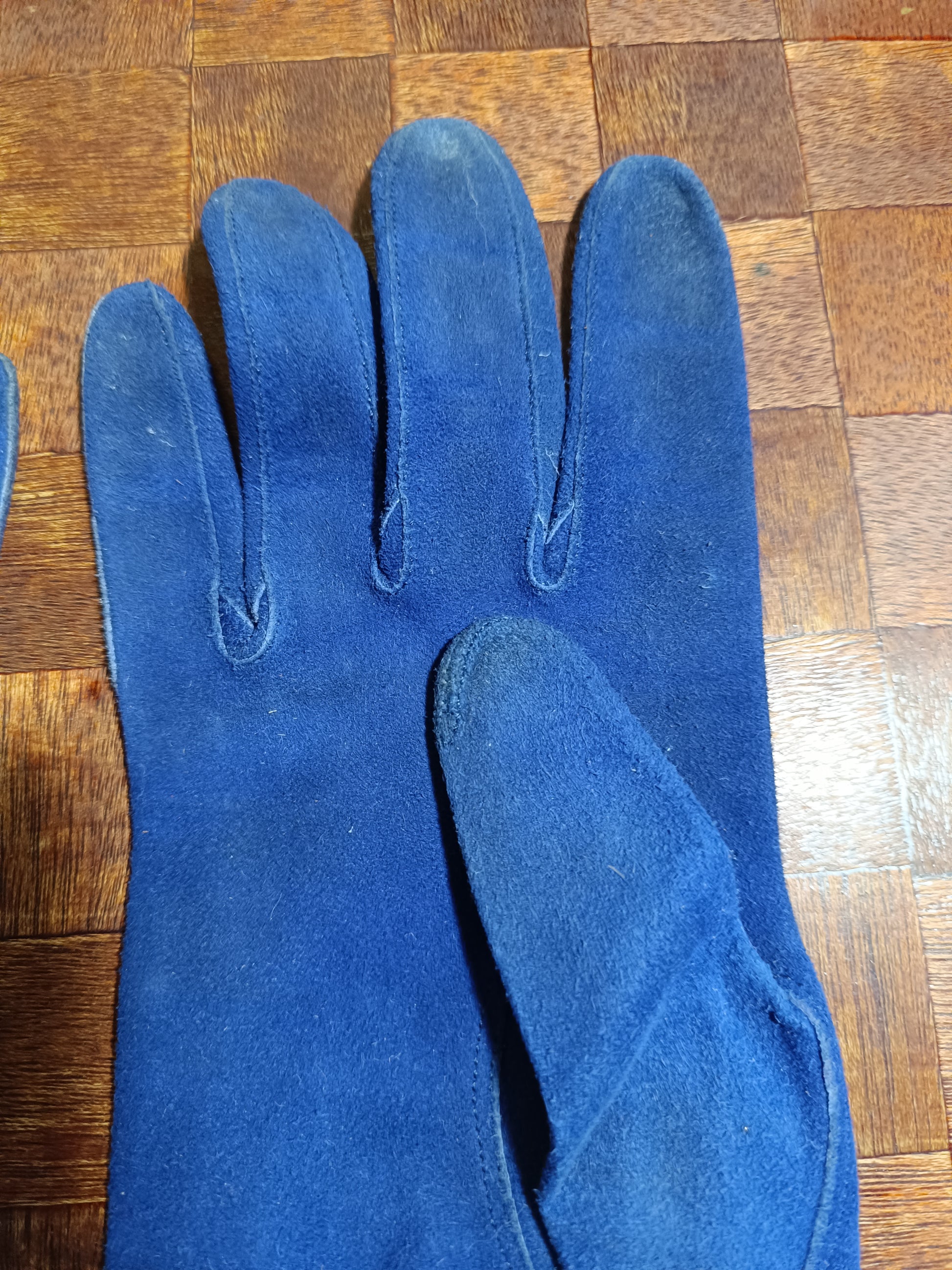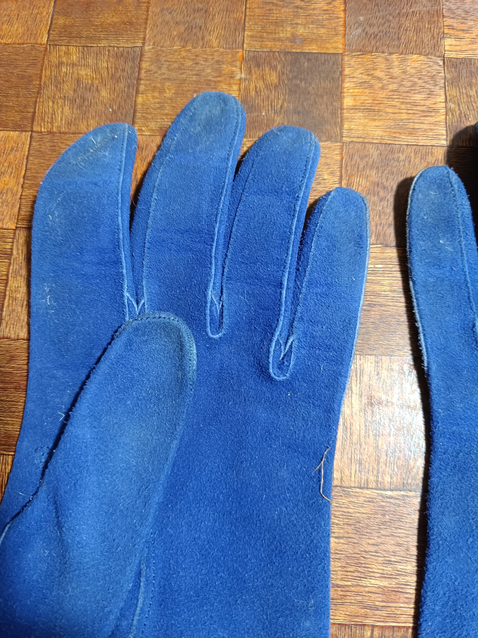 Paires de gants vintage en cuir bleu.