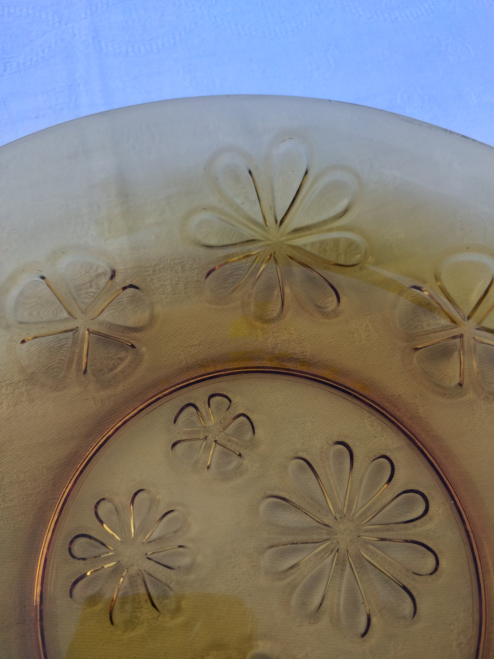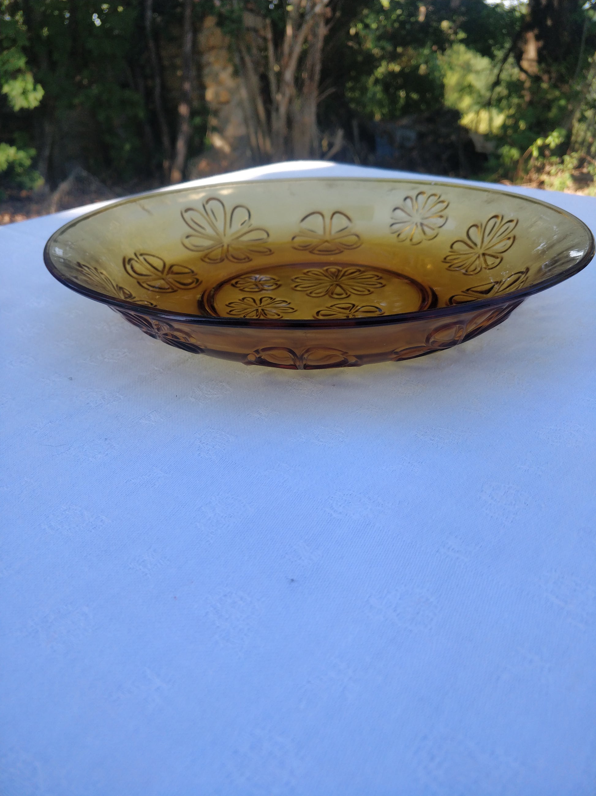 Plat de service en verre trempé couleur ambre.