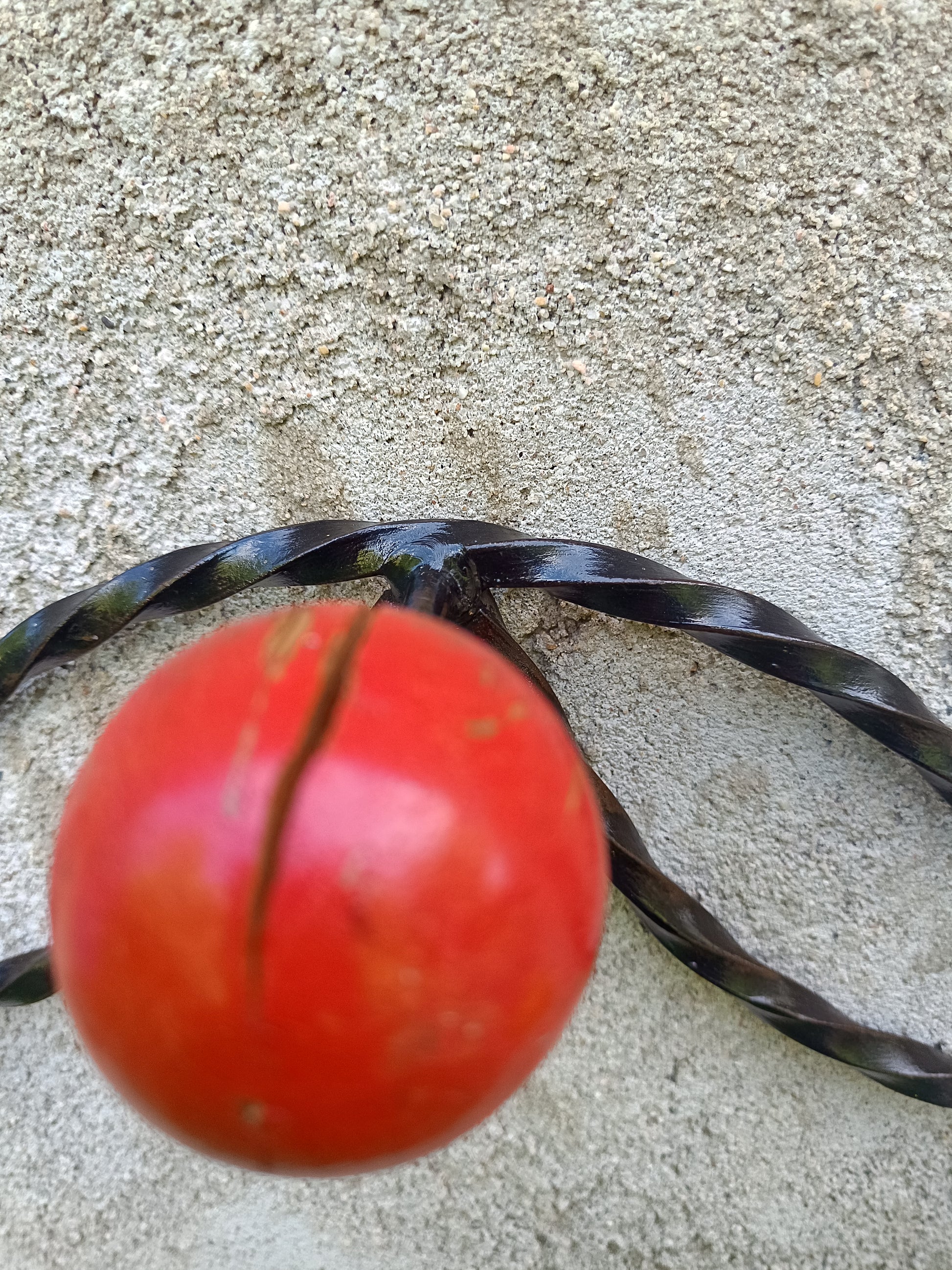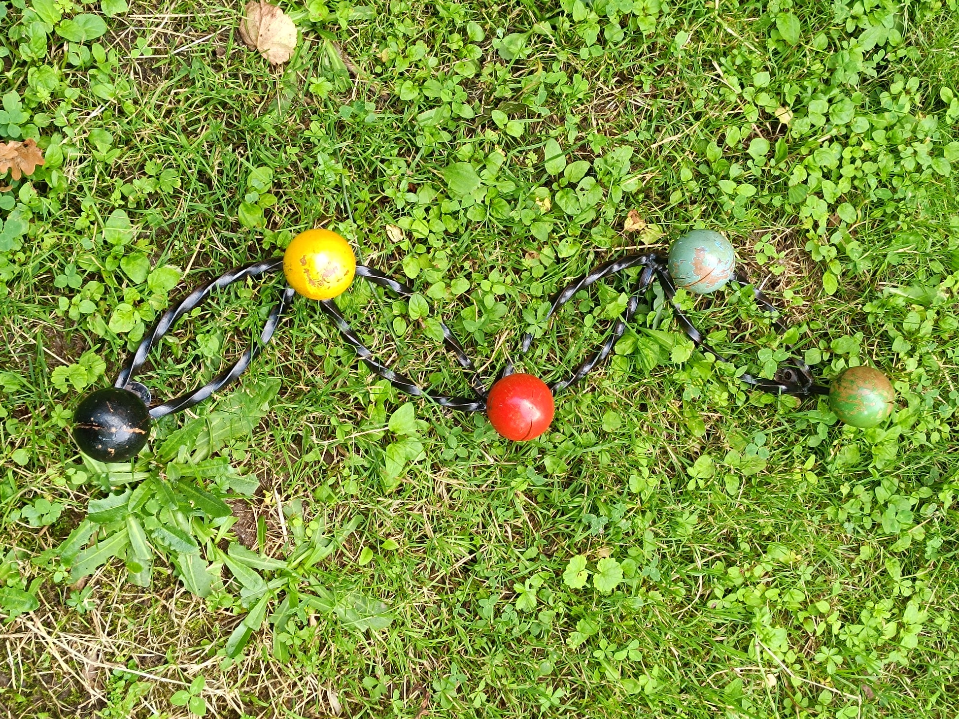 Un vernis incolore à été apliqué sur les boules en bois et sur la partie métallique, afin de conservé l'état et la patine vintage.