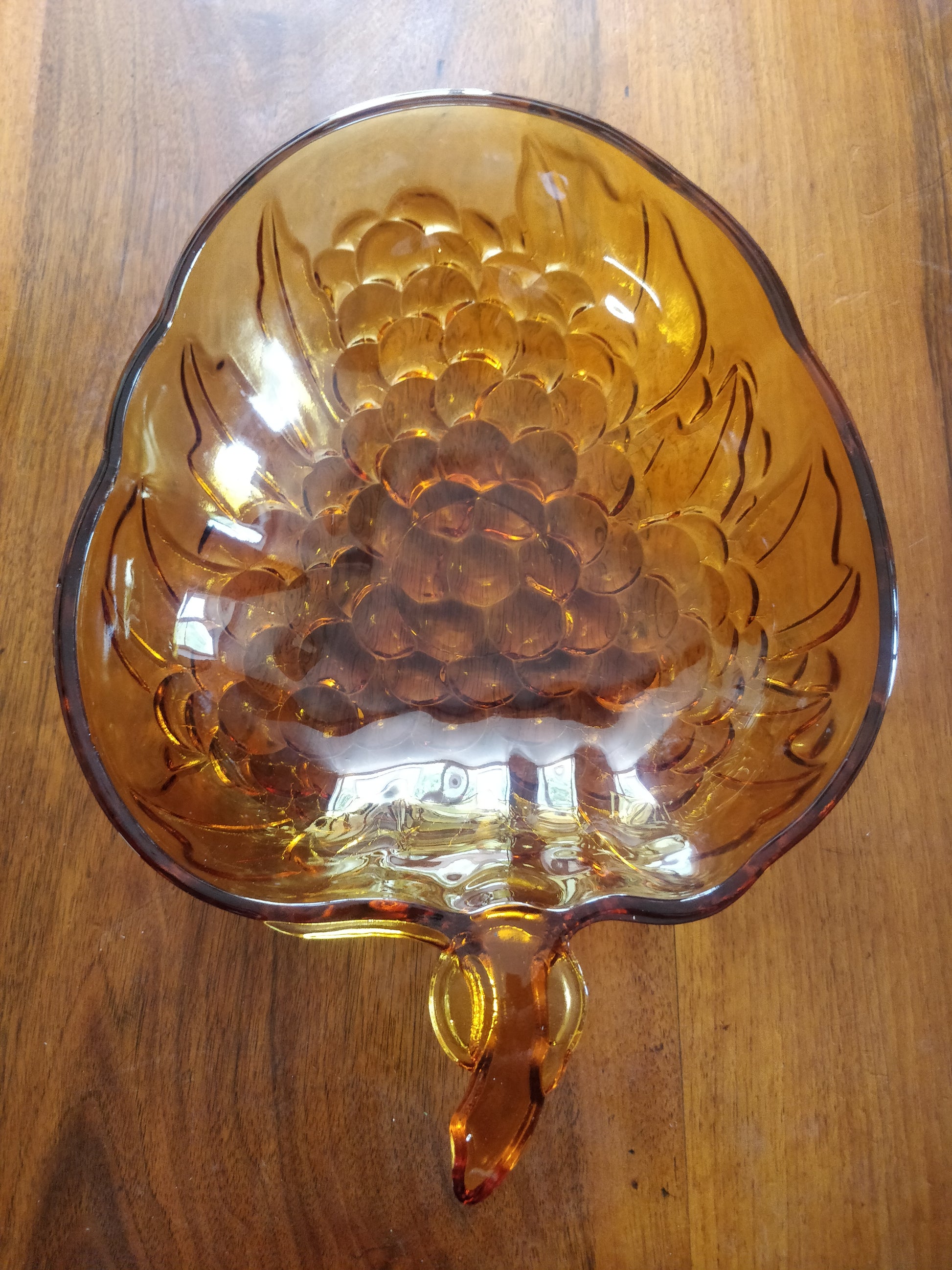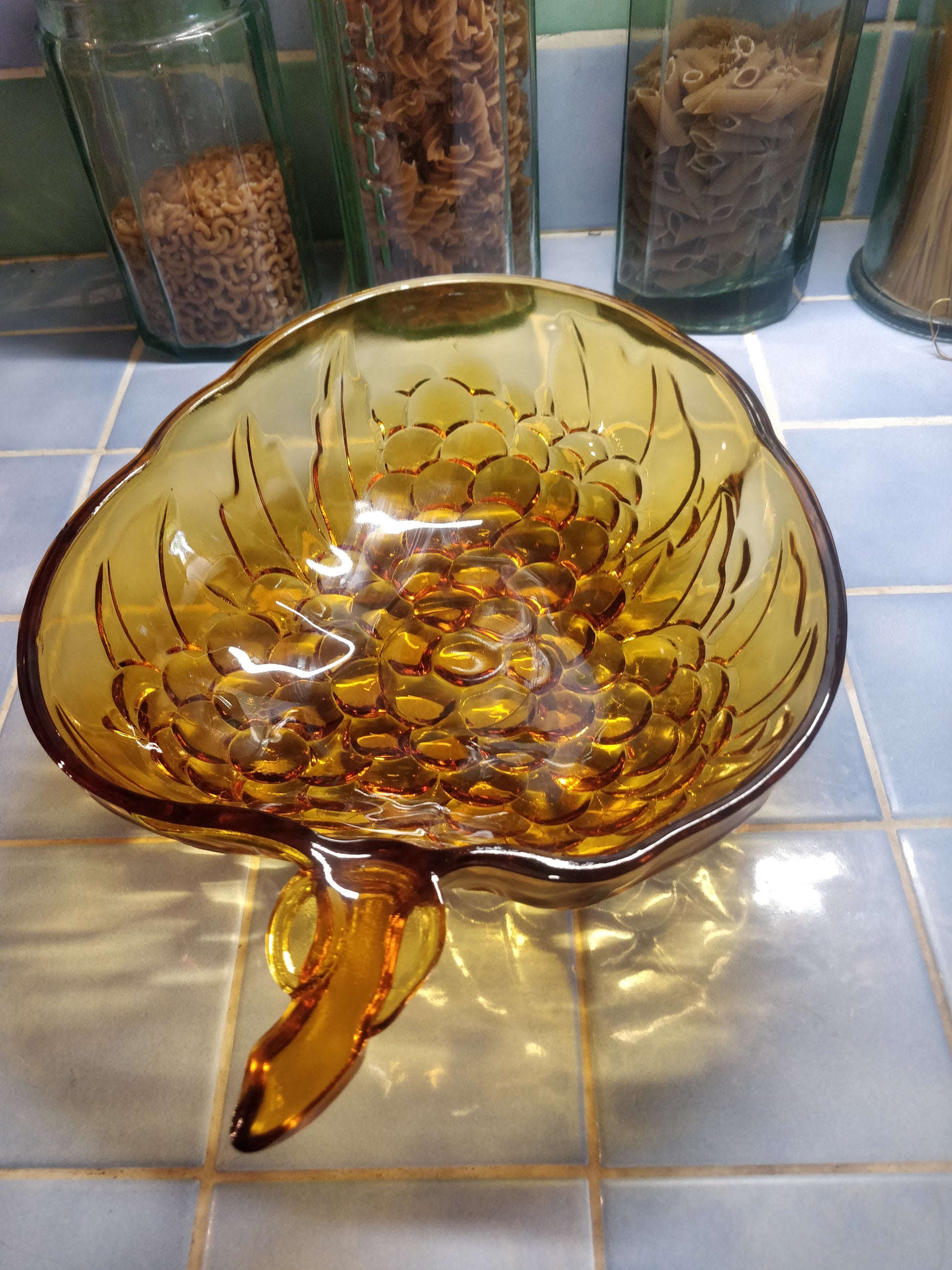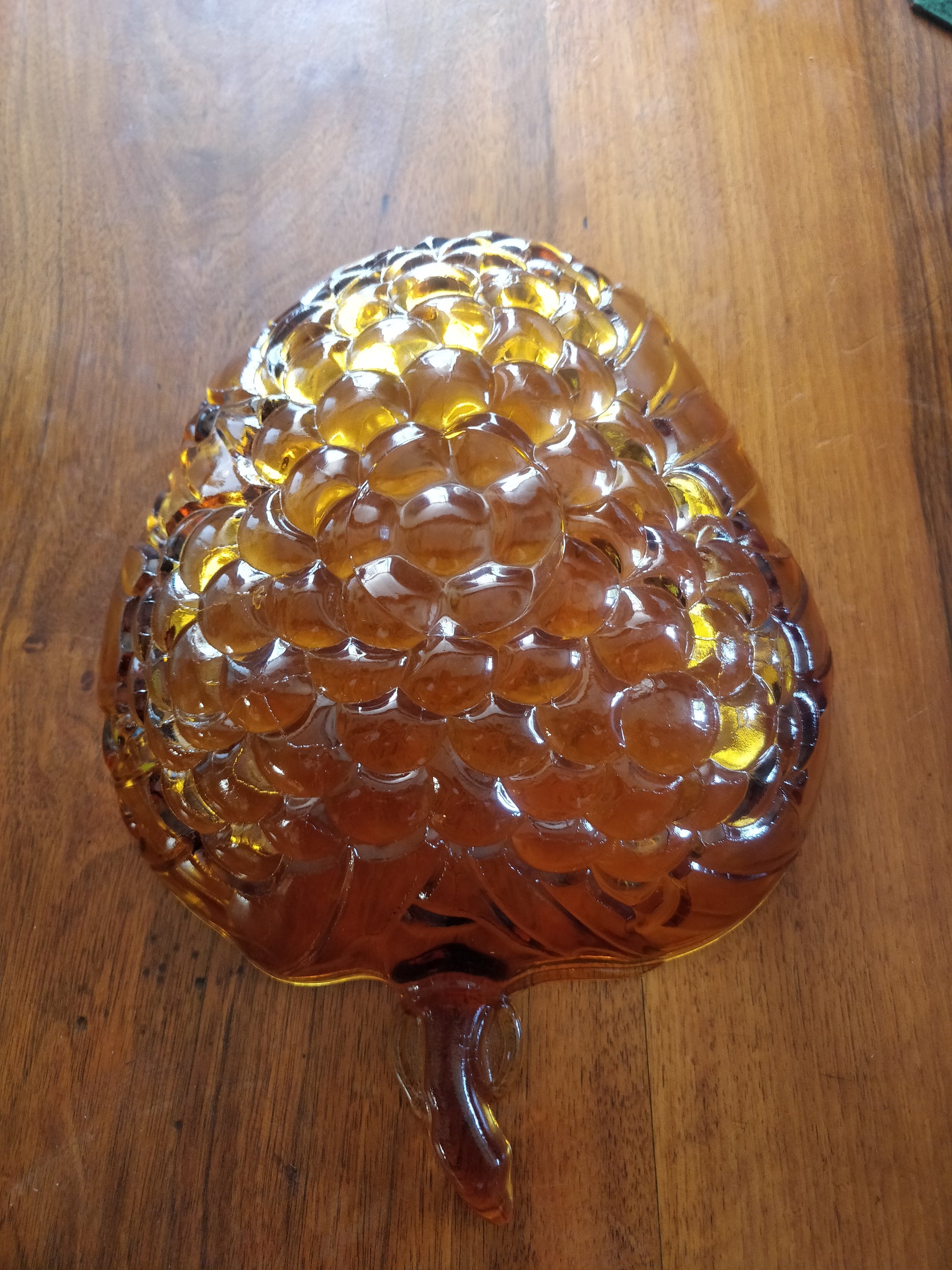Saladier des années 1970 en verre ambré en forme de grappe de raisin.