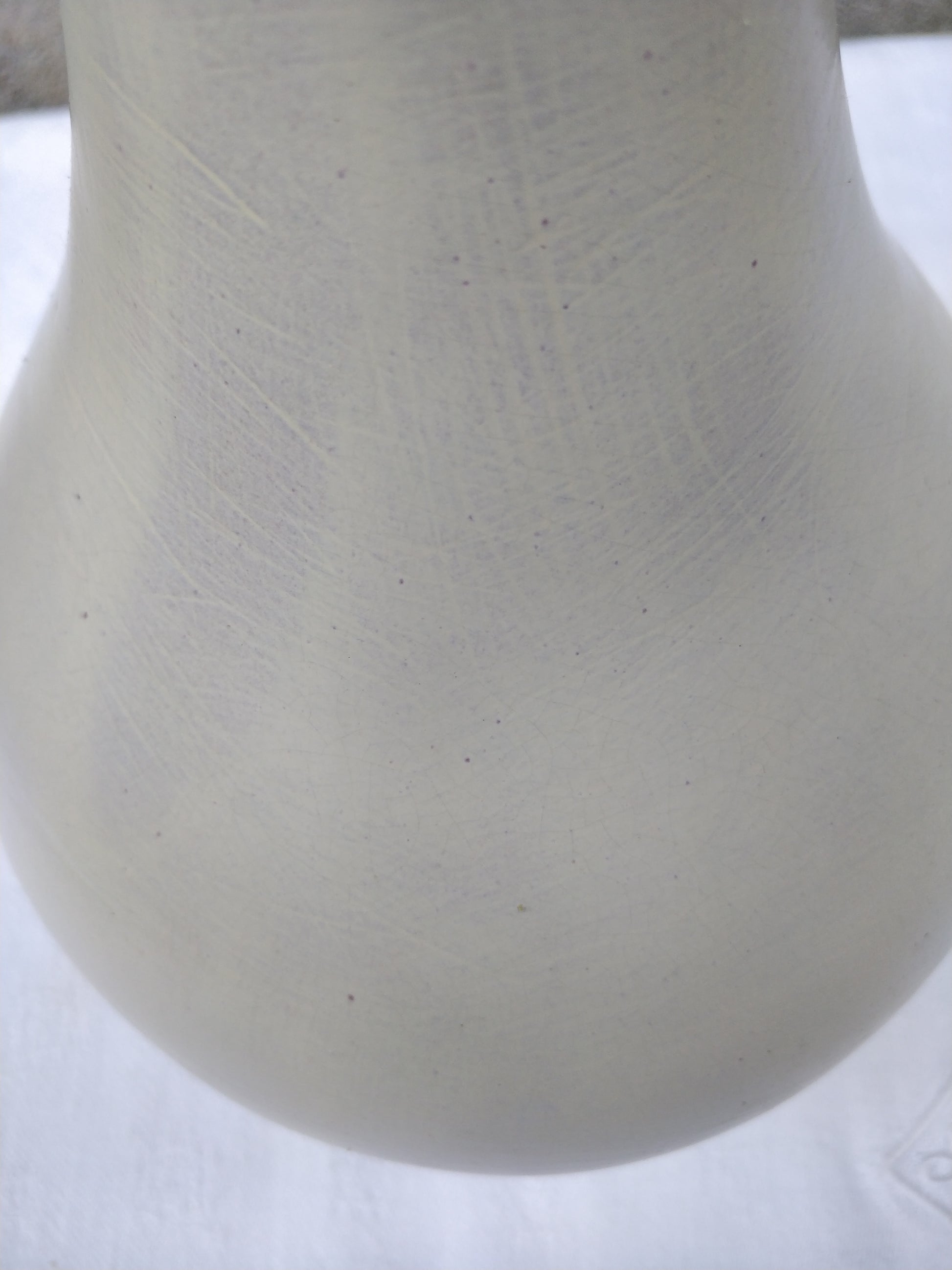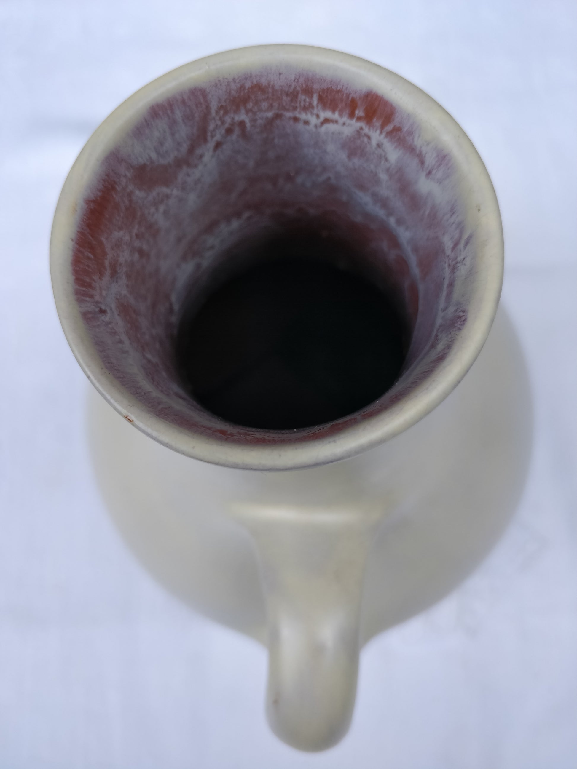 Charmant petit vase soliflore en terre cuite émaillée fait et peint à la main de jolis reflets tirant sur le mauve apparaissent avec subtilités.