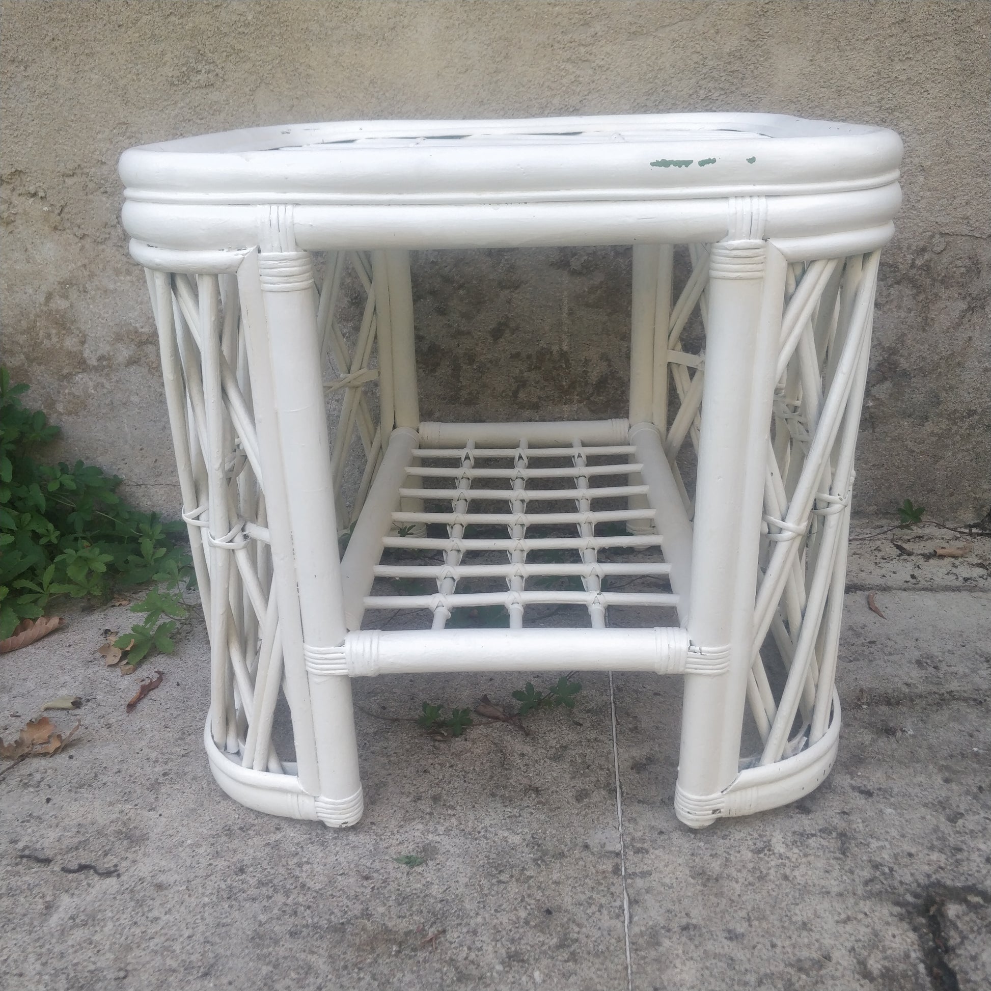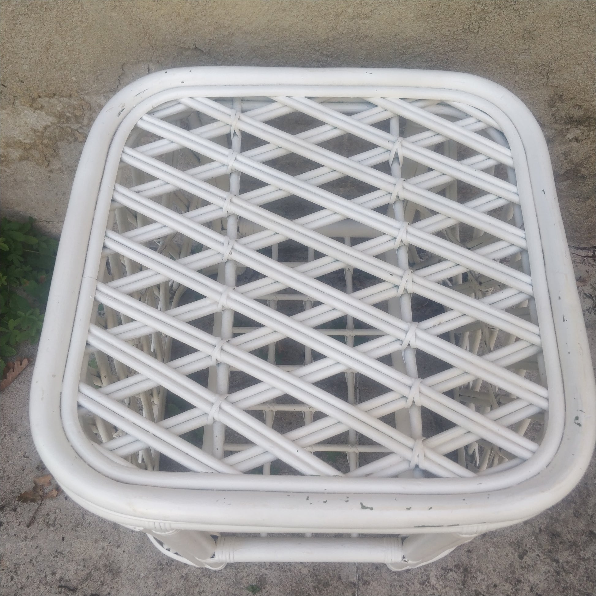 Ancienne table basse, jolie travail de bois cintré , le plateau est mis en valeur par un astucieux alignement de losange, un rayon tout en carré assure une parfaite stabilité à ce jolie meuble unique et son look bohème tendre.