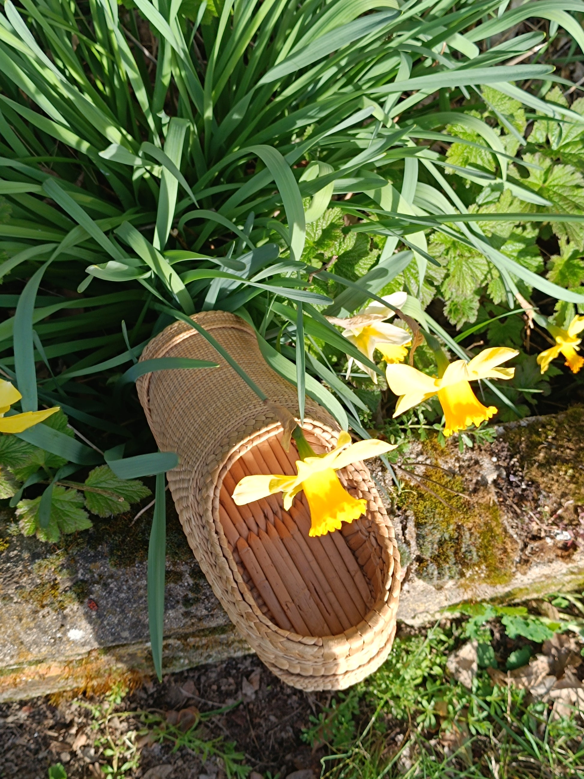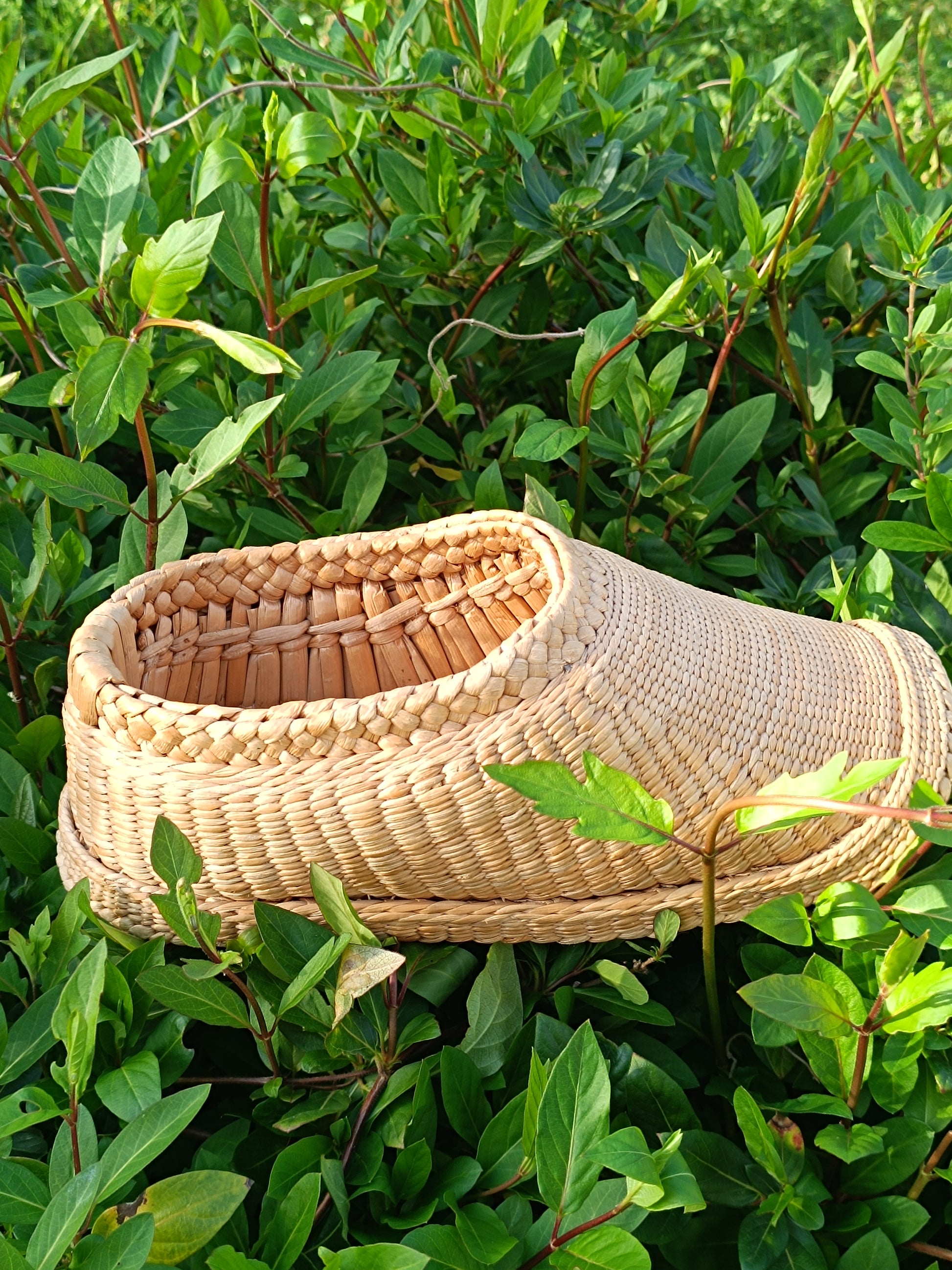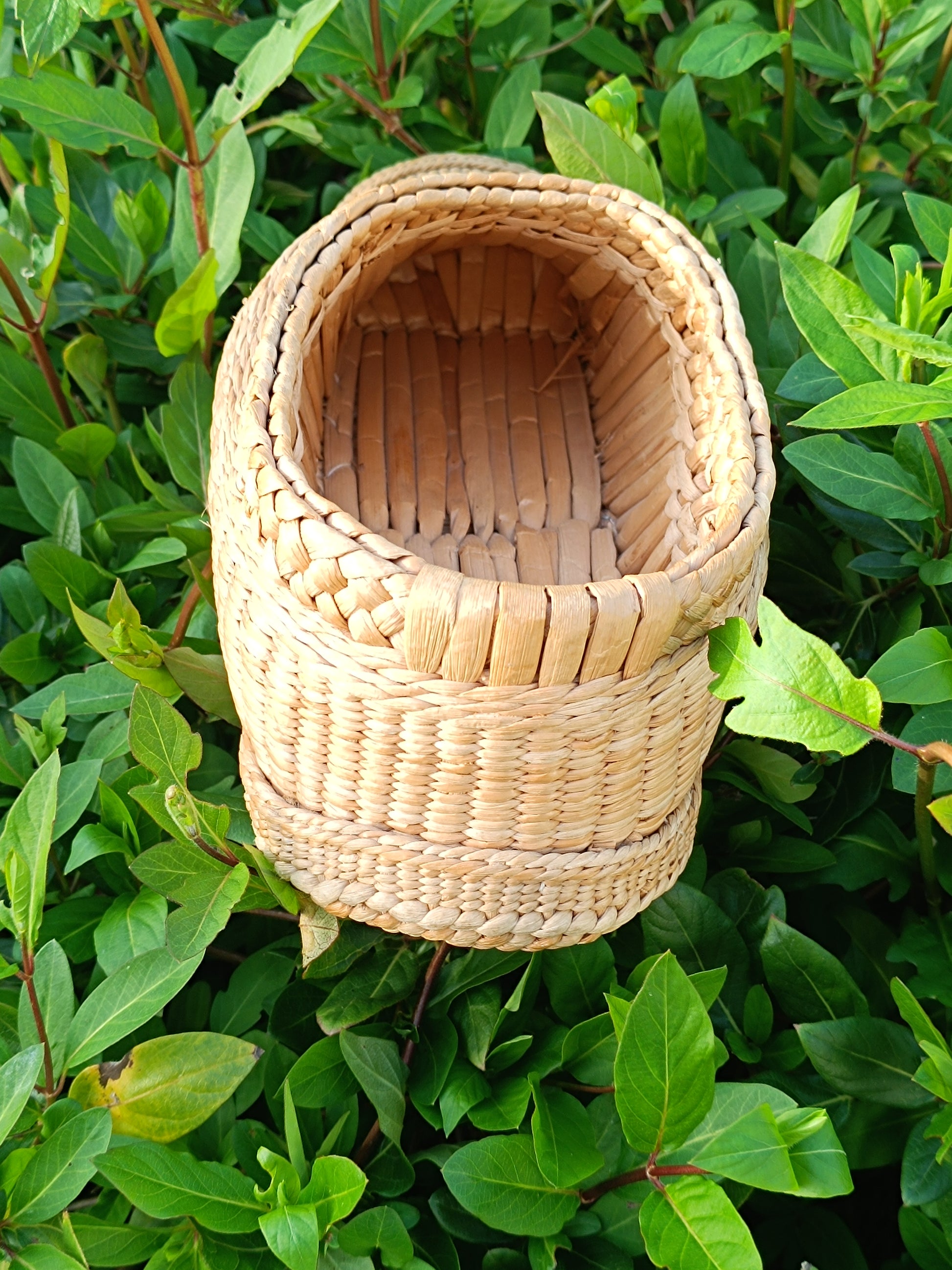 Chausson en paille asiatique, vide poche ou support de plantes grasses ou bien décoration murales fleurs séchées, Vietnam, Cambodge.